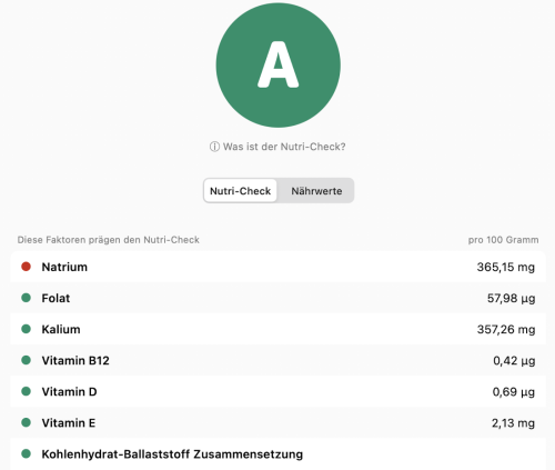 Tipp: Bei der schnellen Einordnung der Nährwertprofile einzelner Rezeptvarianten hilft unser Nutri-Check-Button direkt unter dem Rezeptbild. Die Kennzeichnung mit Buchstaben und Ampelfarben verrät auf einen Blick den Gesundheitswert für das Gericht. Mit einem Klick auf den Nutri-Check-Button, gibt’s die ausführlichen Nährwertdetails nochmal aufgelistet. Und natürlich verraten wir dir auch, auf welchen Faktoren genau unsere Bewertung des jeweiligen Gerichts basiert und was sie berücksichtigen.