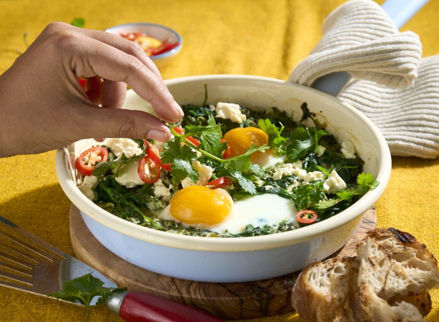 In addition to the classic with tomatoes, you can try something new like spinach, sweet potatoes or white beans as a vegetable base for the poached eggs. This not only gives the dish a different look, but also packs your Shakshuka with new flavours and nutrients.